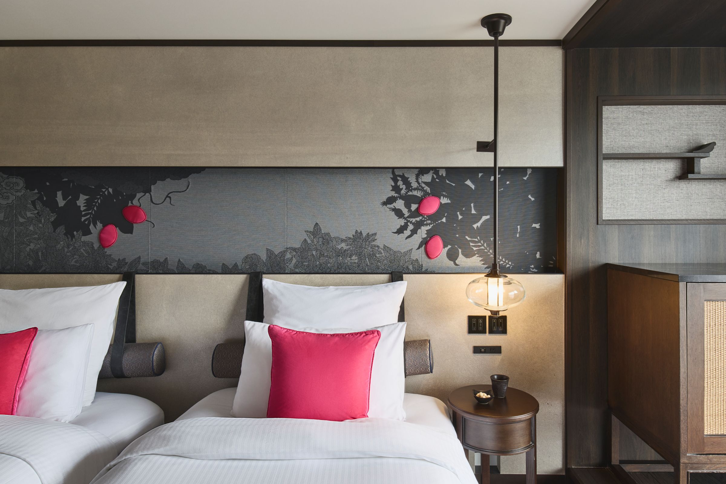 機能的で洗練されたデザインのスーペリアルームは、キングベッド1台またはシングルベッド2台をお選びいただけます。窓際には畳の小上がりを設け、ミニバーでは軽食を楽しめ、ごゆっくりとお寛ぎください。