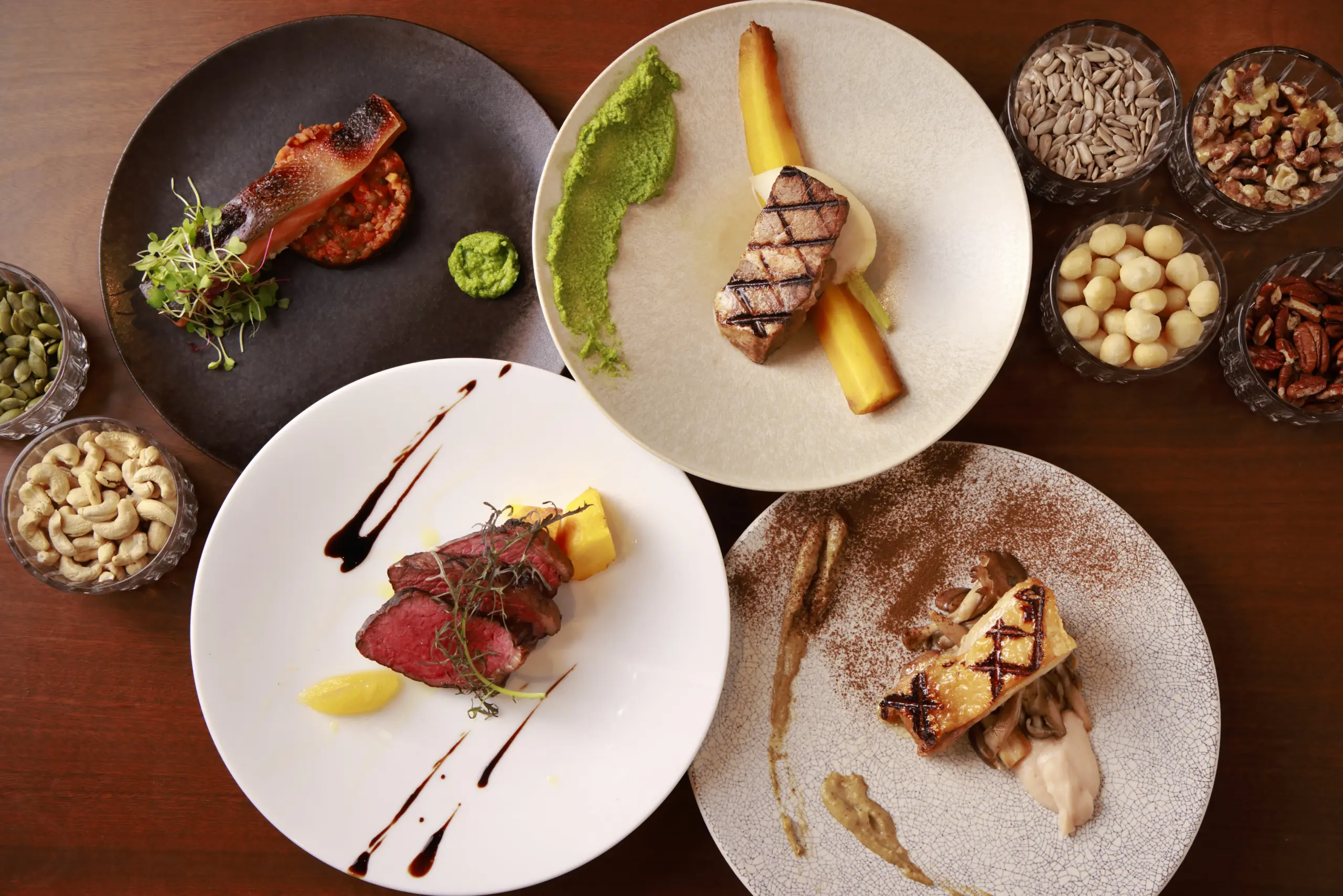 テーマは、「Delightful(喜び)」「Dynamic(豪快さ)」「Delectable(おいしさ)」の3 つの「D」。スタイリッシュなオープンキッチンでは、シェフが希少な和牛やシーフード、全国から厳選された新鮮な食材のほか、地元京都の特産品など、素材の旨みを最大限に引き出したグリル料理を提供します。