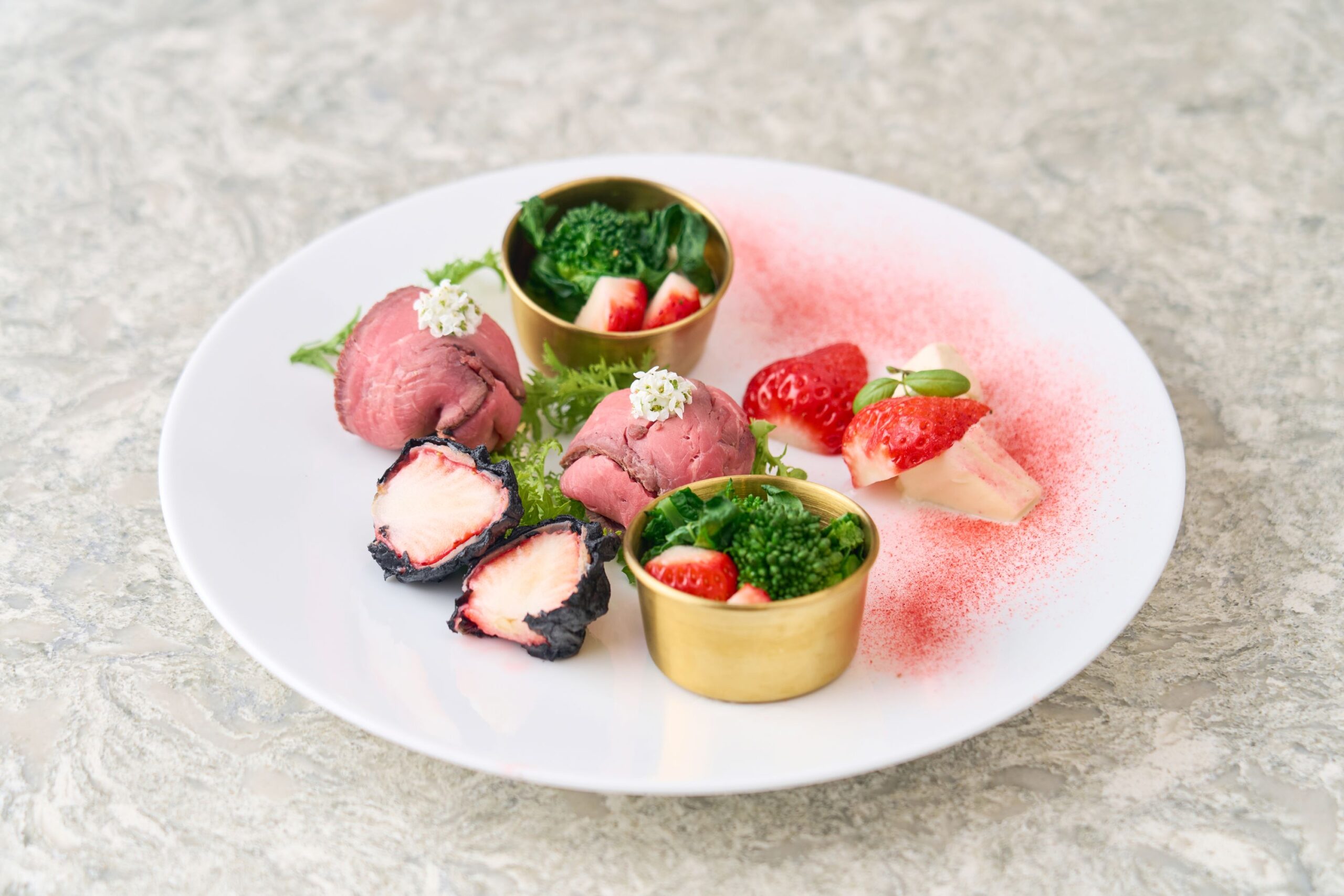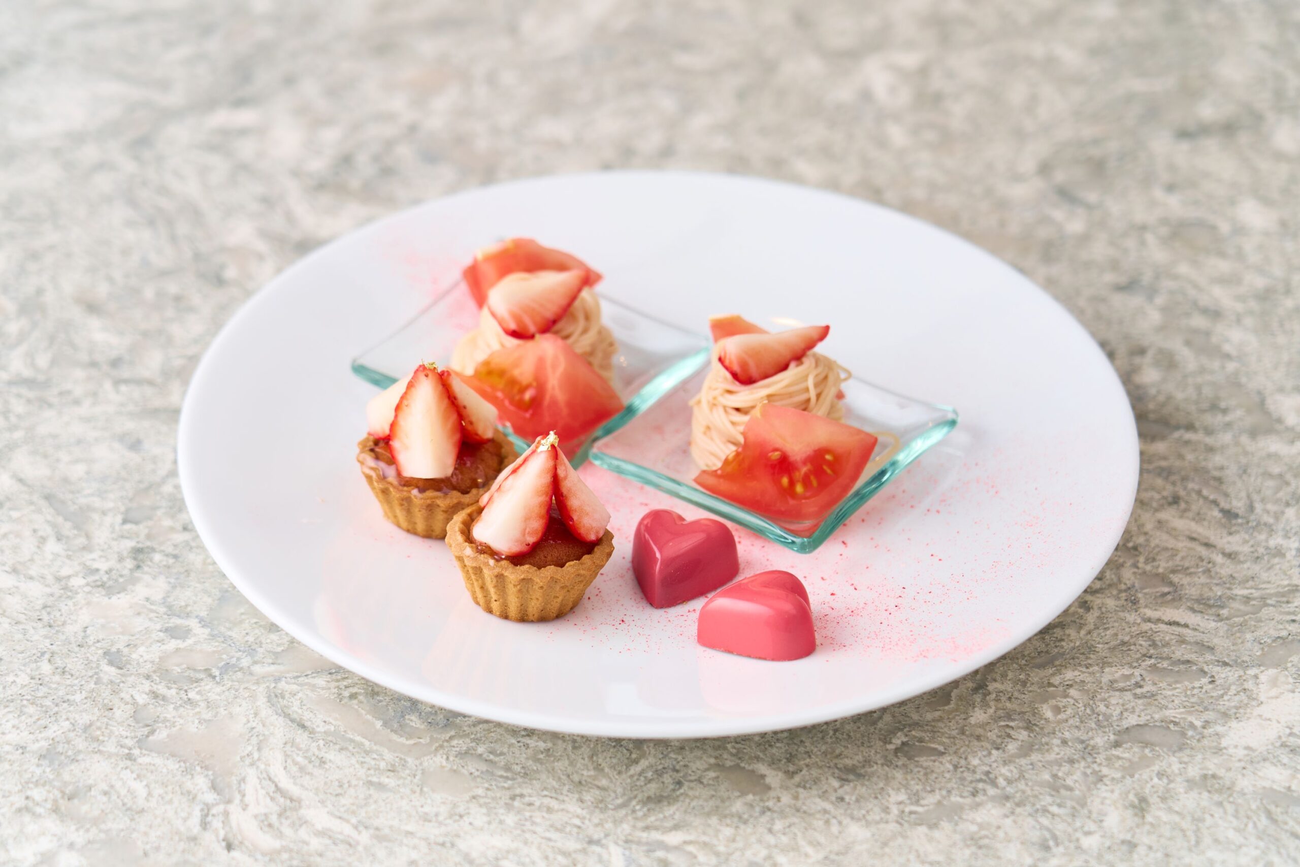 ホテルパティシエが丹精込めて仕上げた、いちごづくしの3皿で、甘酸っぱい香りと鮮やかな色彩が織りなす贅沢なひとときをお楽しみください。