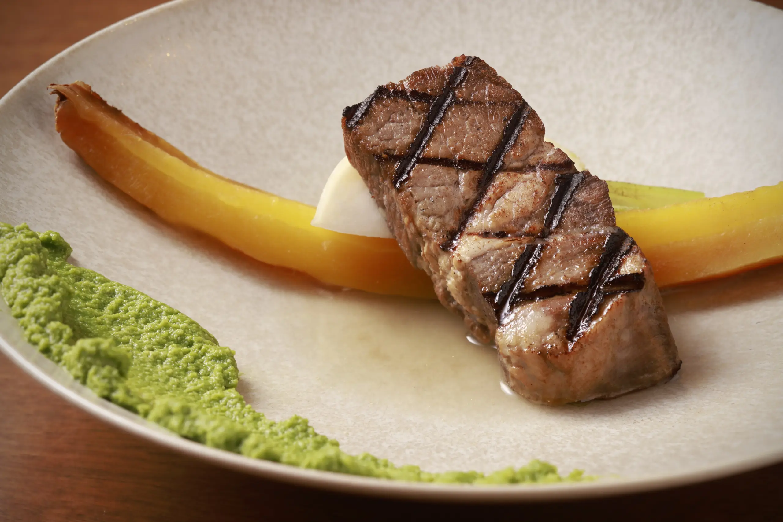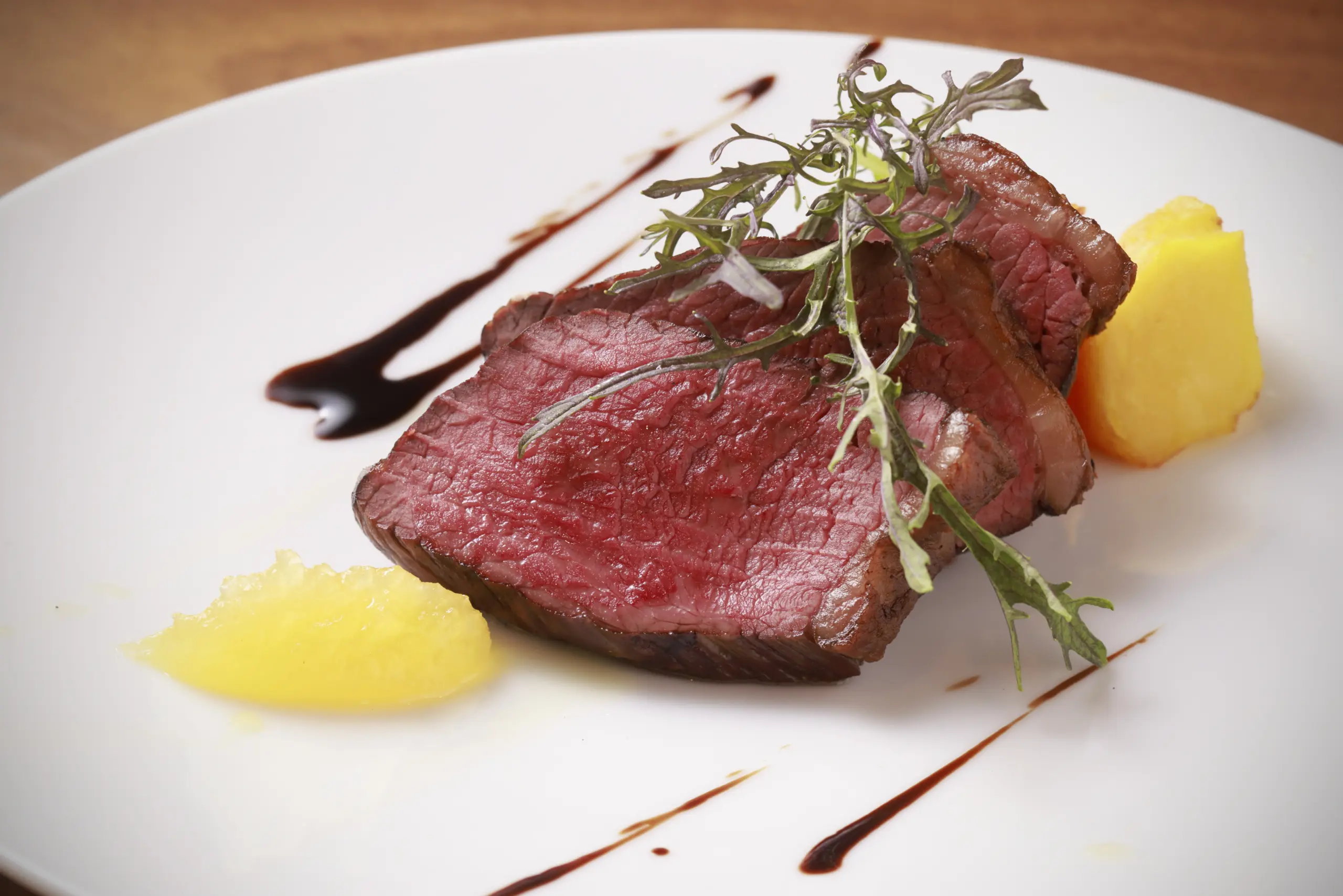 ・グラスフェッドビーフのグリル 林檎のバルサミコソース